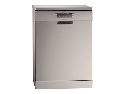 Las copas delicadas no se pueden lavar de forma más segura que con SoftGrip y SoftSpikes de AEG, que sujetan perfectamente las copas, protegiéndolas frente a los daños. Este lavavajillas ProClean le ofrece el máximo alcance del chorro de agua. Dispone de 5 niveles de rociado por aspersión además de un brazo aspersor auxiliar en el extremo del brazo principal. Esto genera un doble movimiento de rotación, que modifica continuamente el ángulo de aspersión para alcanzar cada rincón del interior del lavavajillas, incluso a carga completa.La bandeja cubertera espaciosa y extraÃble de este lavavajillas facilita más que nunca la carga, lavado y descarga de sus cubiertos y utensilios. Especialmente diseñada para aprovechar al máximo el espacio y con una funcionalidad óptimos, tiene capacidad para hasta 15 servicios de cuberterÃa, asà como amplio espacio para utensilios grandes y voluminosos. No necesita esperar para disfrutar de una limpieza superior. Use la función de ahorro de tiempo del lavavajillas ProClean y acorte el ciclo. Dado que ahorra tiempo al aumentar la potencia y la presión del agua, se obtienen los mismos excelentes resultados de limpieza, sólo que bastante más rápido.