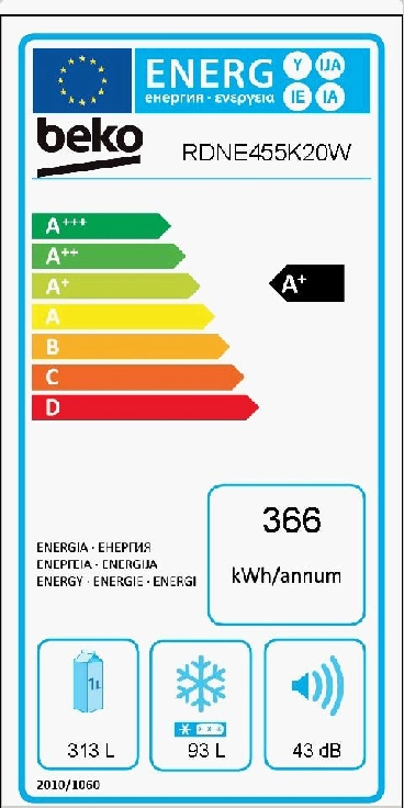 NEVERA BEKO RDNE 455 K20W 70 x 1.82