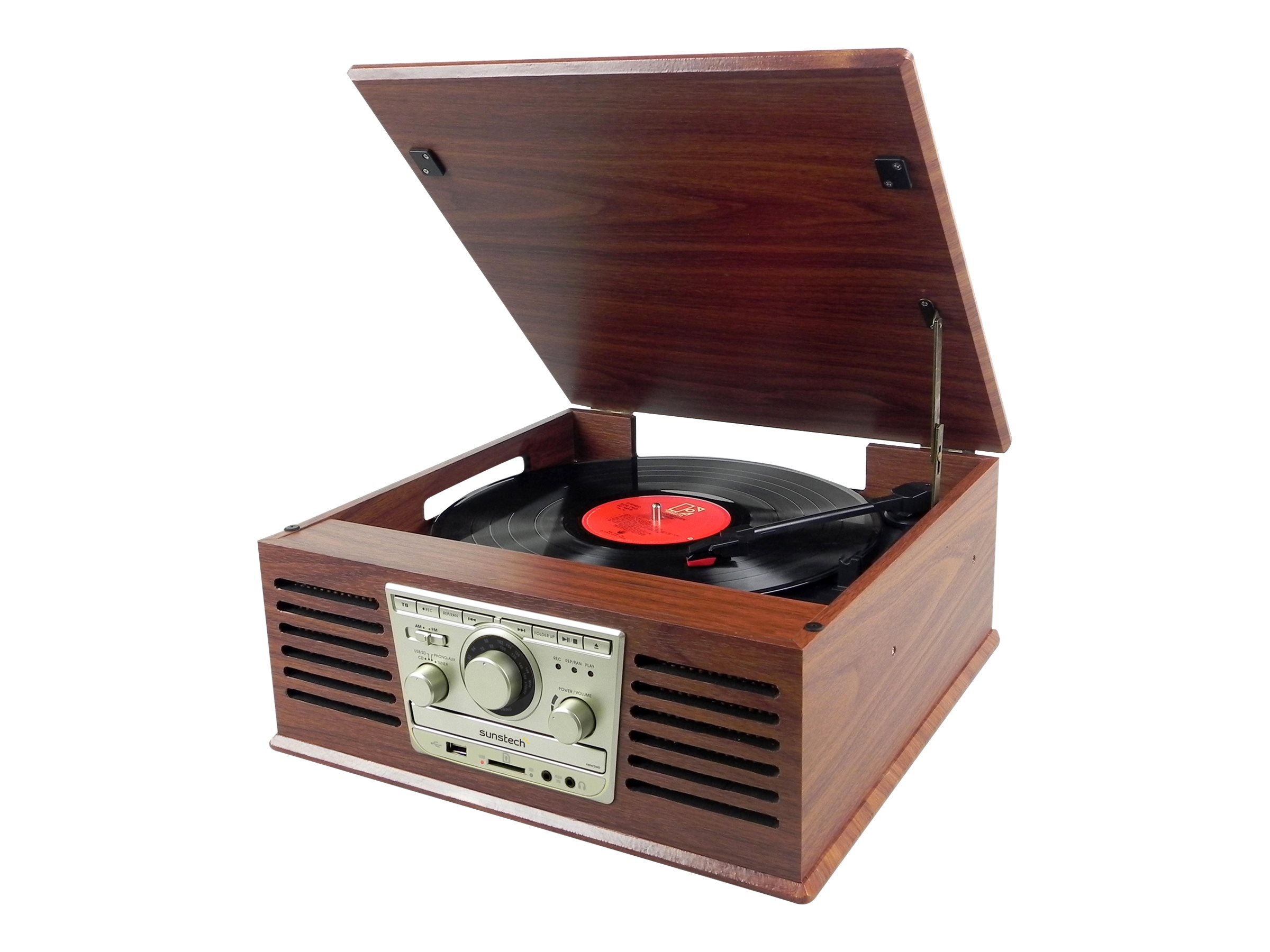 Giradiscos con radio, reproductor de CDs y función encoding para grabar discos al USB y SD / MMC.