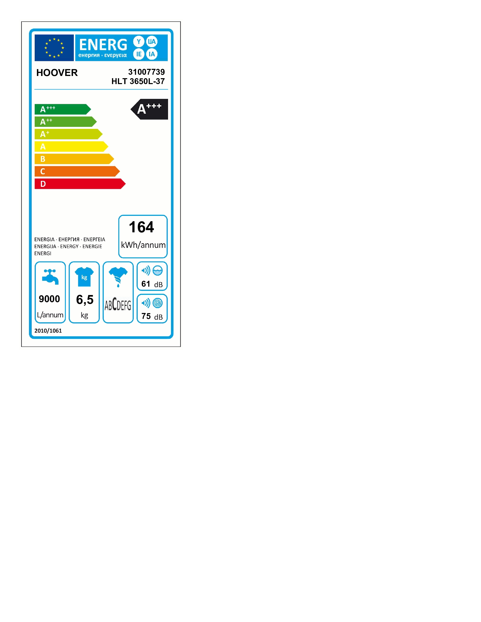 LAVADORA HOOVER HLT3650L 6,5kg 1000rpm A+++