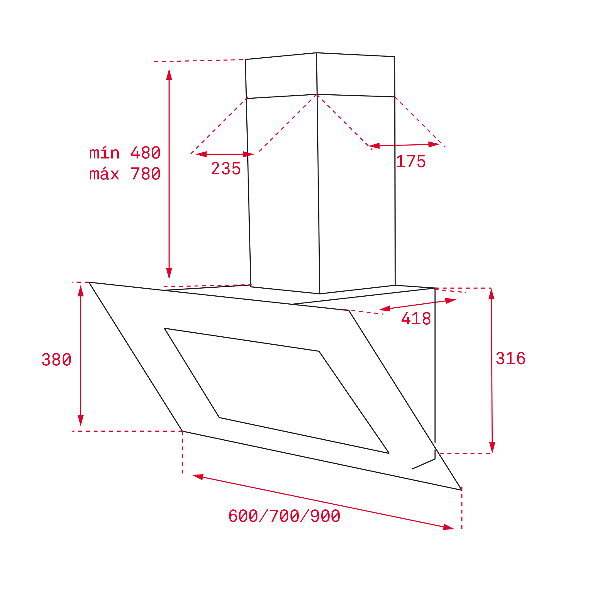 - Capacidades de extracción (*): min.303 m3/h – máx.786 m3/h