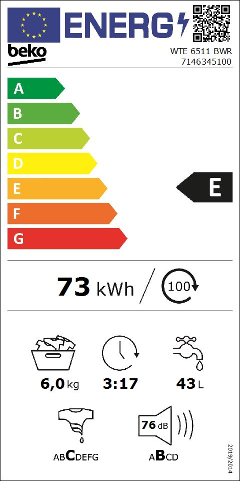 LAVADORA BEKO WTE6511BWR 6k 1000rpm E