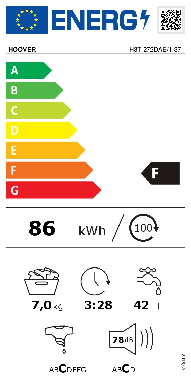 LAVADORA HOOVER H3T272DAE 7k 1200rpm F