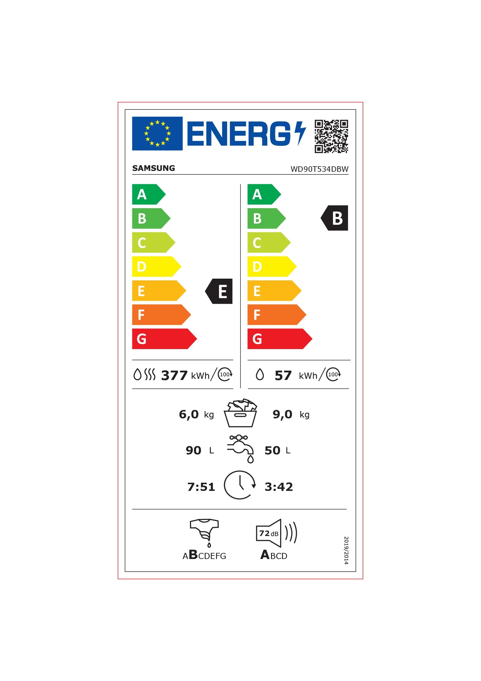 LAVADORA-SECADORA SAMSUNG WD90T534DBW 9/6kg 1400rpm B/E