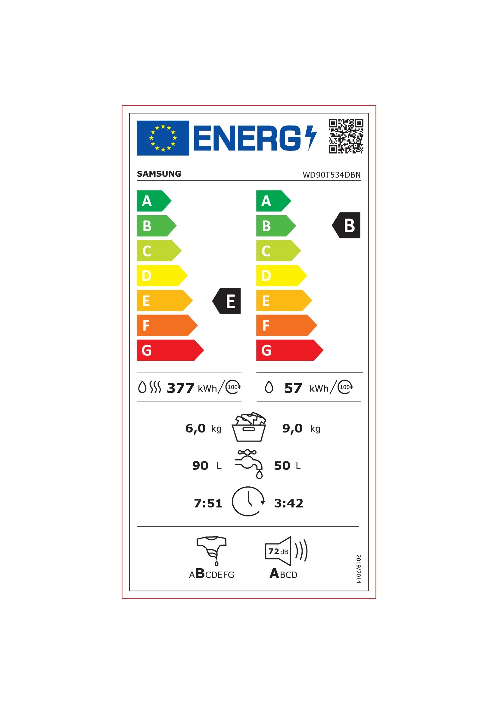 LAVADORA-SECADORA SAMSUNG WD90T534DBN 9/6k 1400rpm E