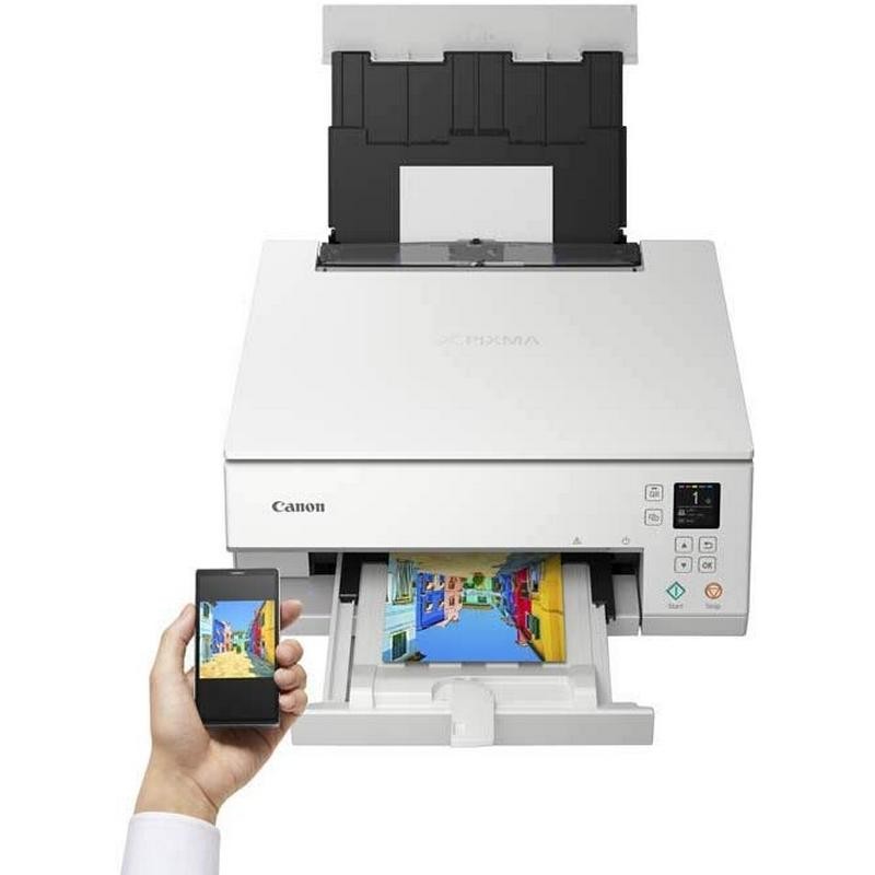 Canon PIXMA TS6351. Tecnología de impresión: Inyección de tinta, Impresión: Impresión a color. Resolución máxima: 4800 x 1200 DPI. Copiando: Copia a color, Escaneando: Escaneo a color. Resolución óptica de escáner: 1200 x 2400 DPI. Funciones dúplex: Copiar, Imprimir, Escanear. Tamaño máximo de papel ISO A-series: A4. Capacidad de entrada estándar: 100 hojas. Wifi. Impresión directa. Color del producto: Blanco