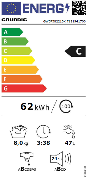 LAVADORA GRUNDIG GW5P582210X 8KG 1200RPM C