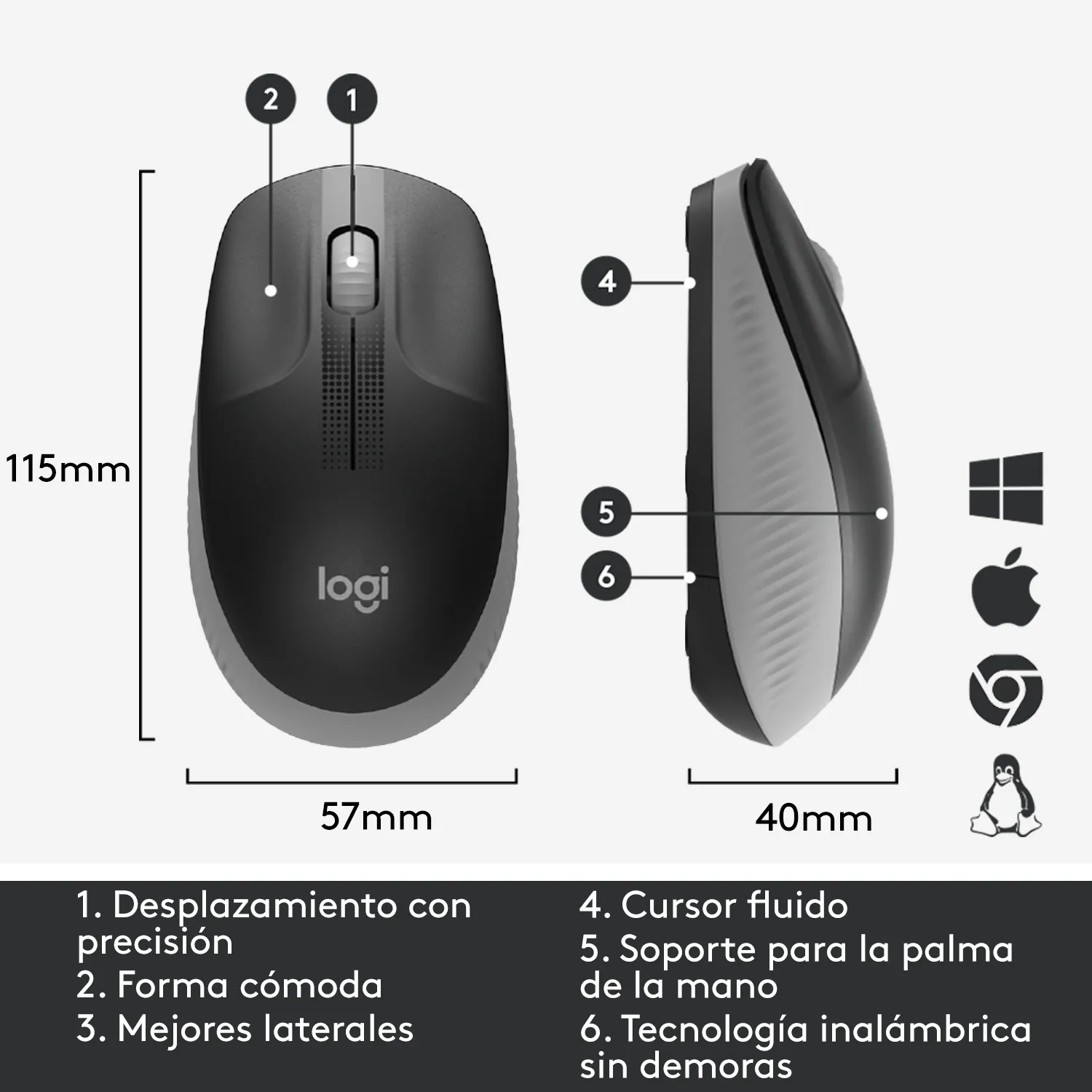 RATON LOGITECH M190 AMBIDEXTRO RF BLACK/GREY