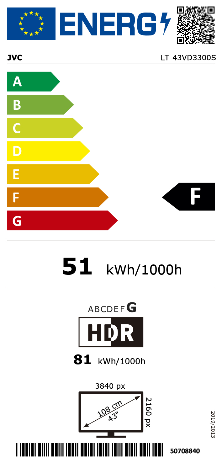 - Consumo energético encendido (SDR): 85 kWh/1000h