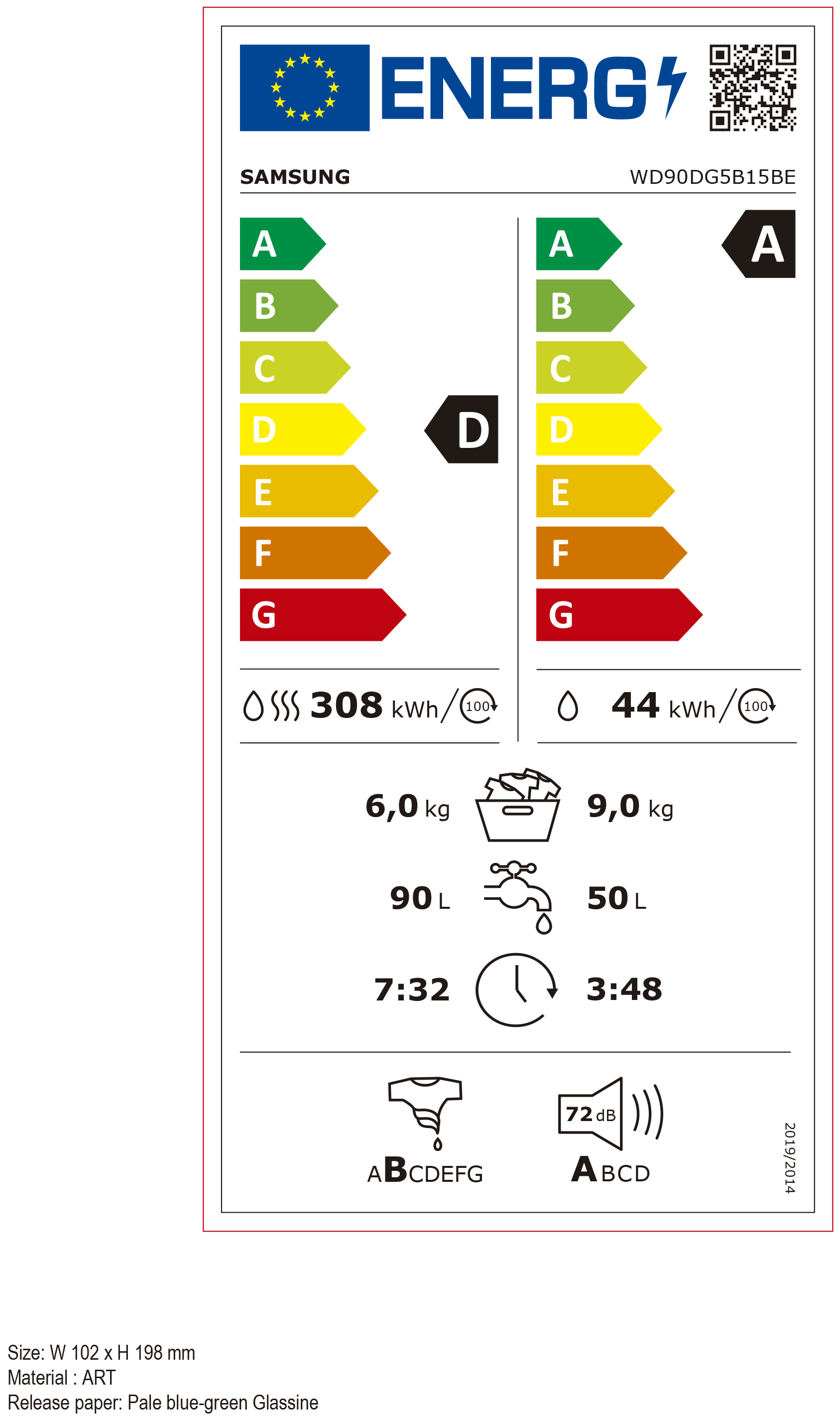 Consumo de energía (100 ciclos, solo lavado): 44 kWh