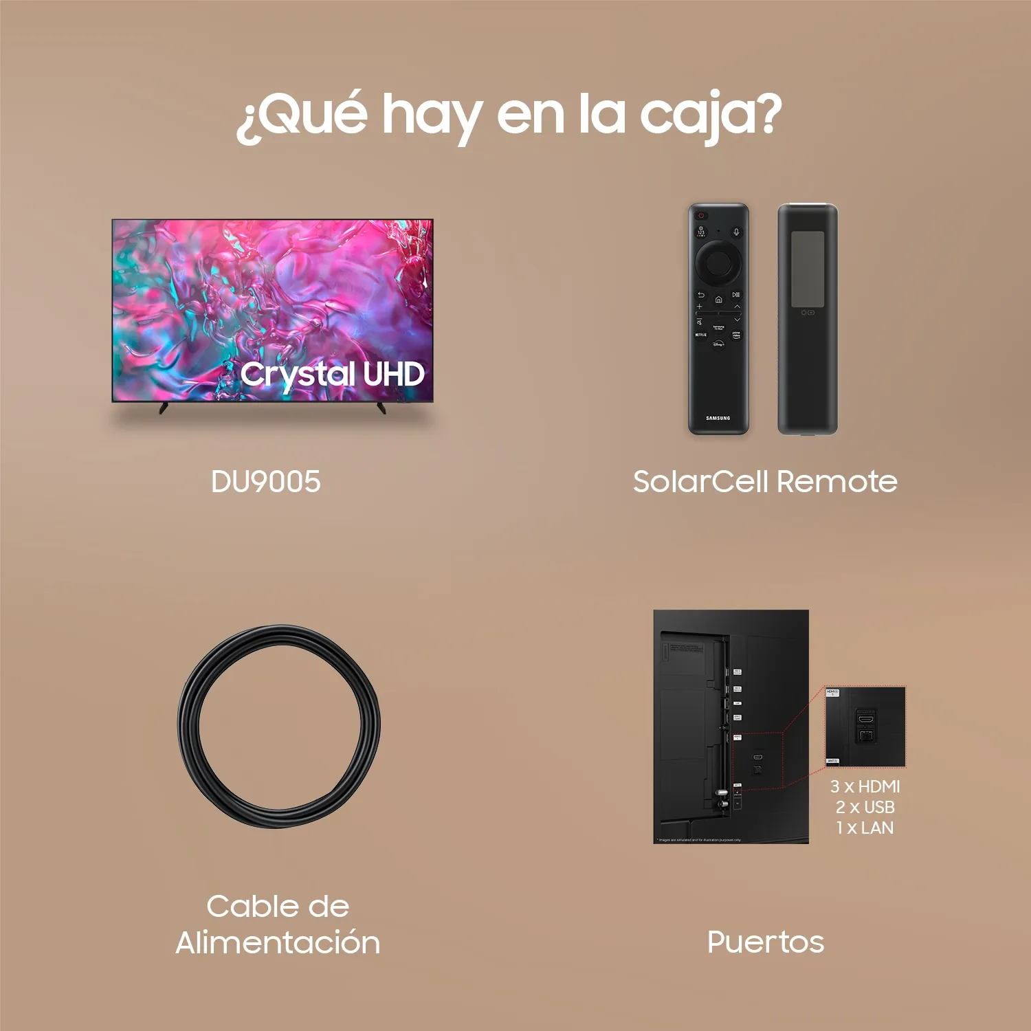 Samsung TV DU9005 Crystal UHD 98” 4K Smart TV 2024. Diagonal de la pantalla: 2,49 m (98"), Resolución de la pantalla: 3840 x 2160 Pixeles, Tipo HD: 4K Ultra HD, Tecnología de visualización: LED, Forma de la pantalla: Plana. Smart TV. Relación de aspecto nativa: 16:9. Formato de señal digital: DVB-C, DVB-T2. Wifi, Ethernet. Color del producto: Negro