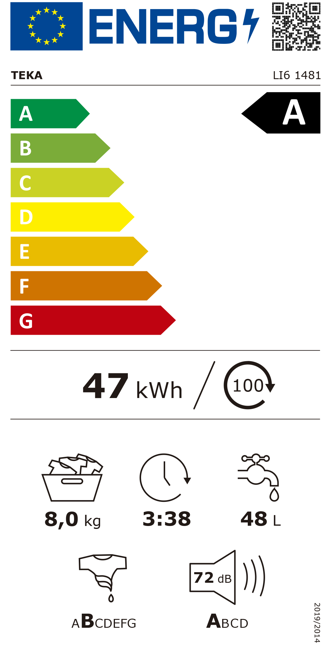 LAVADORA TEKA LI61481 8KG 1400RPM A
