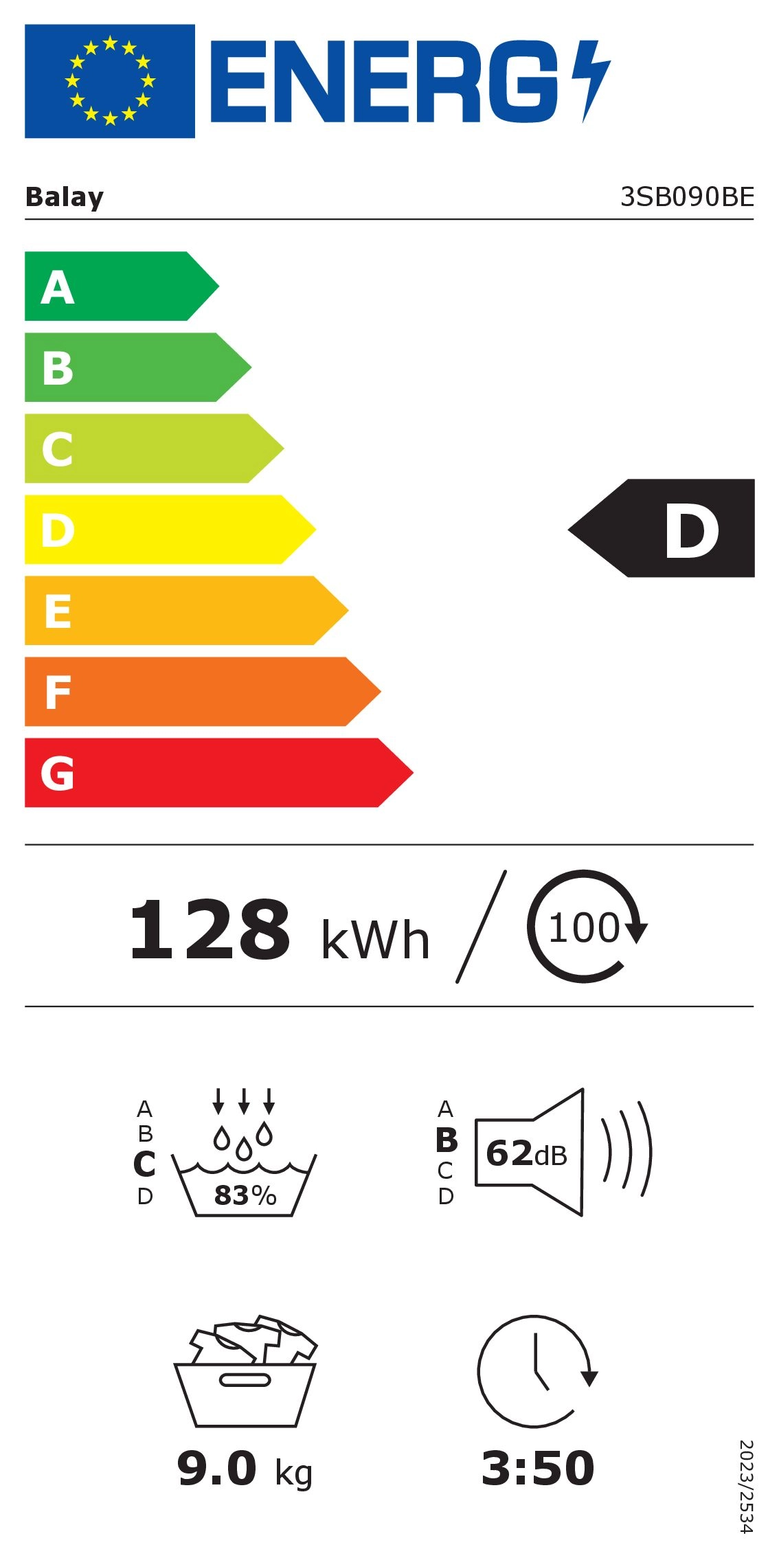 Capacidad nominal, en kg, para el programa eco con carga completa (UE 2017/1369): 9.0 kg