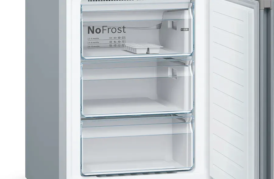 Bosch KGN39VIDB. Capacidad neta total: 368 L. Bisagra para puerta: Derecho. Clase climática: SN-T, Nivel de ruido: 36 dB. Frigorífico, capacidad neta: 279 L, Antiescarcha (nevera), Sistema multi-flujo de aire (nevera), Luz interior de la nevera, Frigorífico, número de compartimentos: 5. Congelador, capacidad neta: 89 L, Capacidad de congelación: 10 kg/24h, Antiescarcha (congelador). Clase de eficiencia de energía: D, Consumo de energía anual: 191 kWh. Color del producto: Acero inoxidable