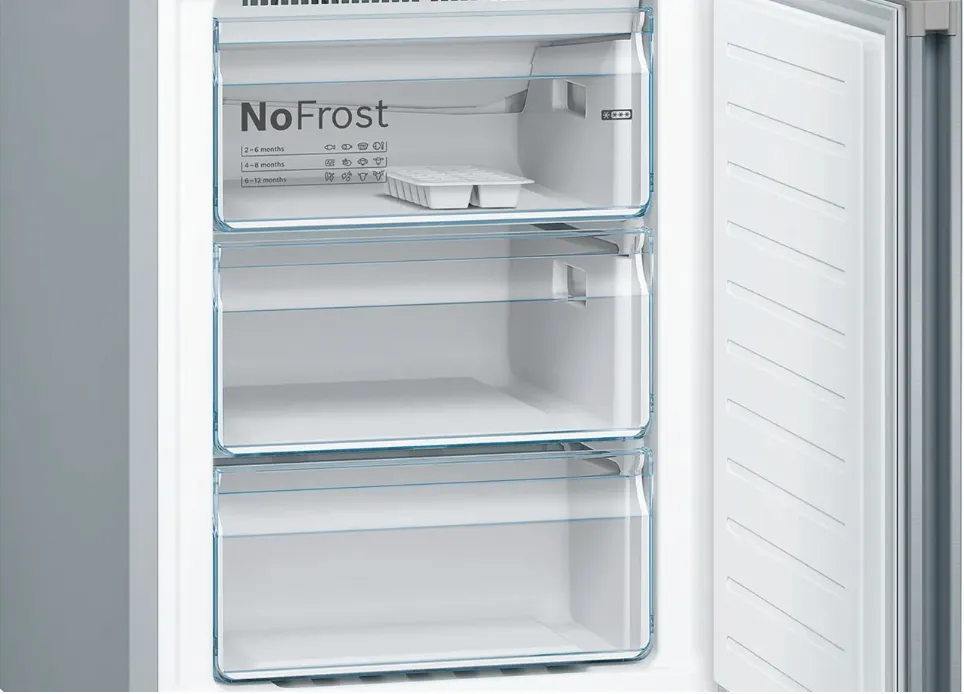 Bosch Serie 4 KGN39VIEB. Capacidad neta total: 368 L. Bisagra para puerta: Derecho, Tipo de visualizador: LED. Clase climática: SN-T, Nivel de ruido: 39 dB. Frigorífico, capacidad neta: 279 L, Antiescarcha (nevera), Luz interior de la nevera. Congelador, capacidad neta: 89 L, Capacidad de congelación: 14 kg/24h, Antiescarcha (congelador). Compartimiento de zona fresca. Clase de eficiencia de energía: E, Consumo de energía anual: 238 kWh. Color del producto: Acero inoxidable