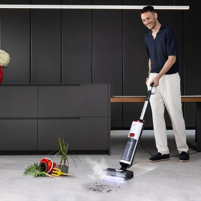 Polti WD10. Tipo de producto: Aspiradora escoba 2 en 1, Tipo de depósito: Sin bolsa, Color del producto: Negro, Blanco. Tipo de limpiador: Seca y húmeda, Filtración de aire en aspiradora: HEPA, Nivel de ruido: 70 dB. Longitud del cable: 4,9 m, Radio de operación: 6 m. Fuente de energía: Corriente alterna, Potencia máx. de entrada: 750 W, Potencia de succión: 7000 Pa. Ancho: 270 mm, Profundidad: 240 mm, Altura: 1160 mm