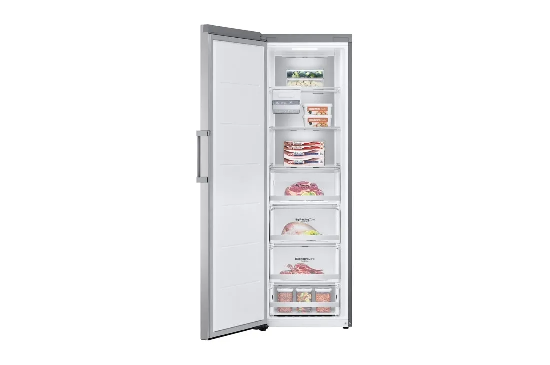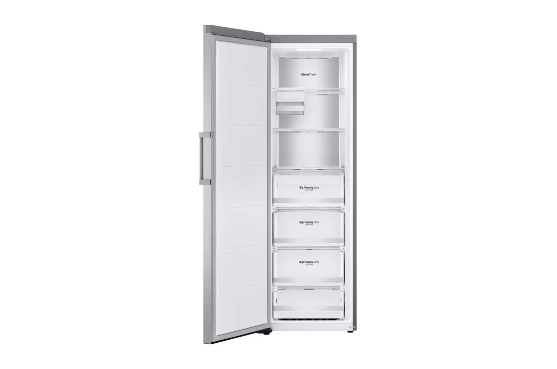 LG GFM61MBCSF. Congelador, capacidad neta: 324 L, Clase climática: T, Tiempo de almacenamiento en caso de fallo de alimentación: 15 h, Nivel de ruido: 37 dB, Índice Star: 4*, Sistema de descongelado. Clase de eficiencia de energía: D, Consumo de energía anual: 211 kWh. Color del producto: Gris