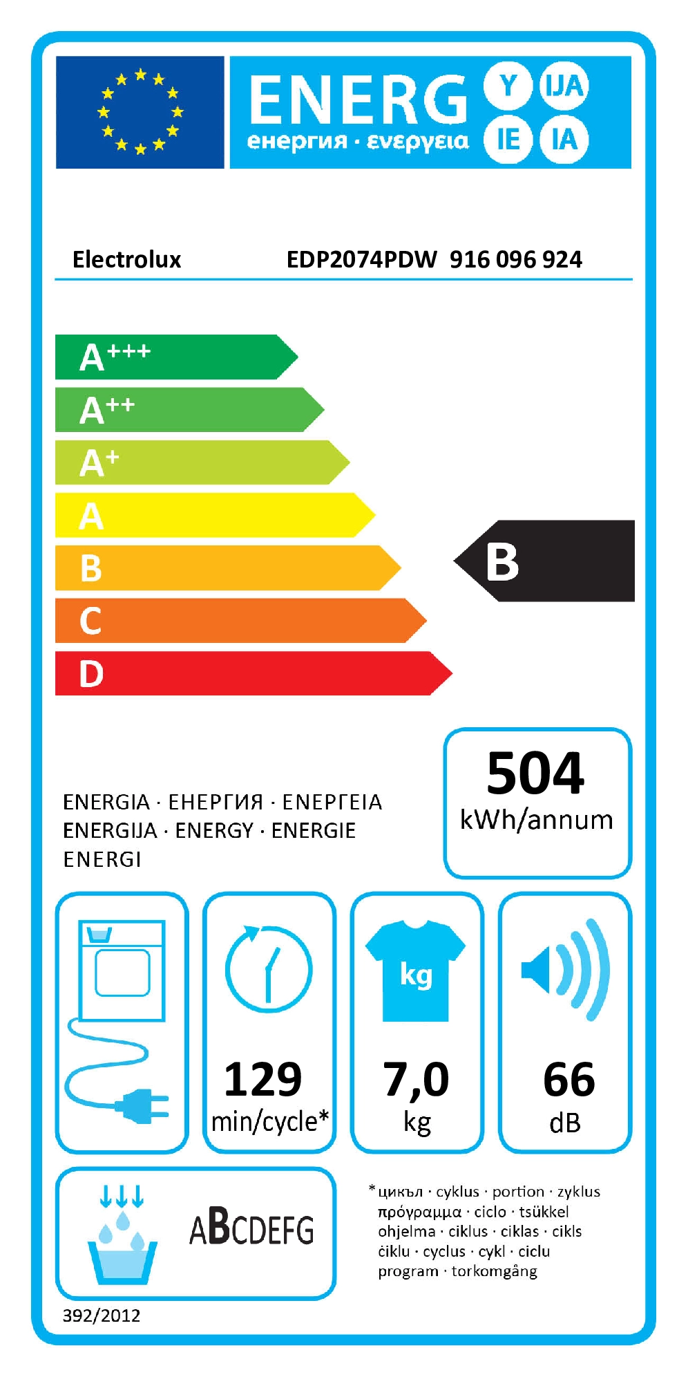 SECADORA ELECTROLUX EDP2074PDW 7KG CONDENSACION B
