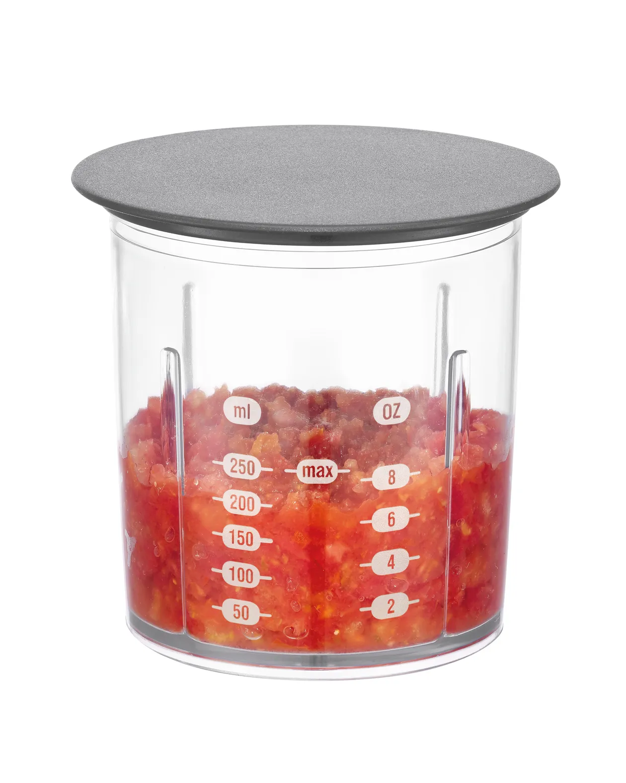 Vaso de plástico de 0,6l graduado para medir los ingredientes con total precisión.