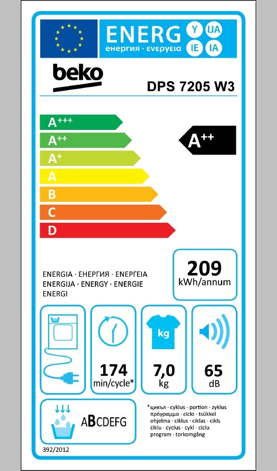 SECADORA BEKO DPS7205W3 7KG BOMBA CALOR A++