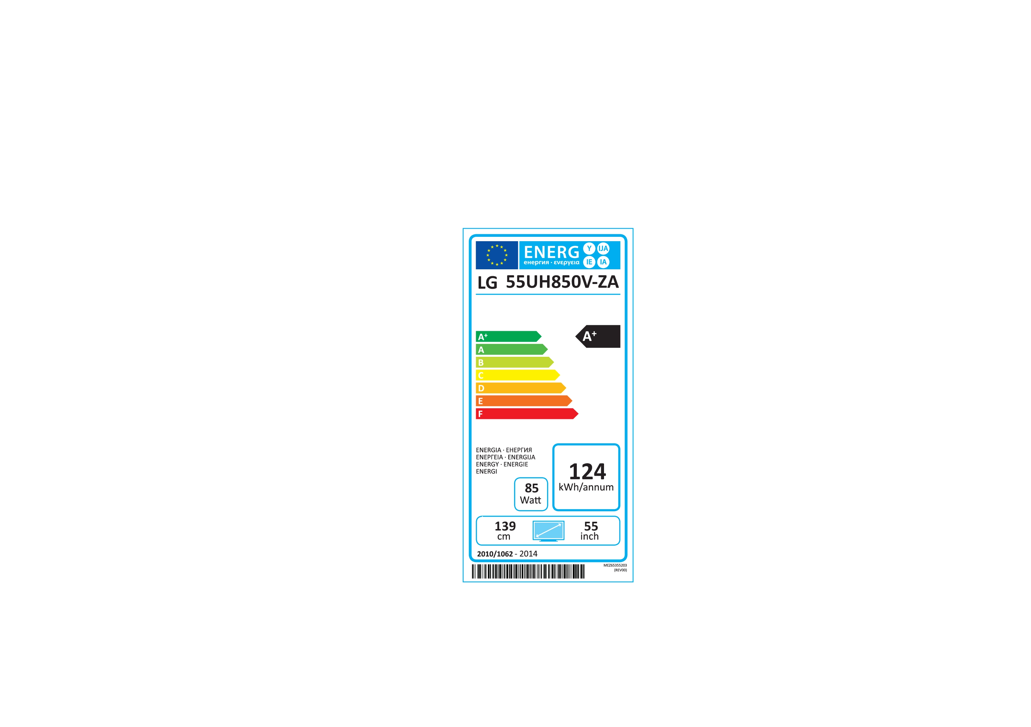 LG 55UH850V. Diagonal de la pantalla: 139,7 cm (55"), Tipo HD: 4K Ultra HD, Resolución de la pantalla: 3840 x 2160 Pixeles. Tipo de sintonizador: Analog & Digital, Formato de señal digital: DVB-C, DVB-S2, DVB-T2. Sistema operativo instalado: Web OS, Versión de sistema operativo: 3.0. Potencia estimada RMS: 40 W, Modos de sonido: Juego, Película, Música, Deportes, Decodificadores incorporados: DTS. Versión HDMI: 2.0a, Versión Common interface Plus (CI+): 1.3, Control de electrónica de consumo (CEC): SimpLink