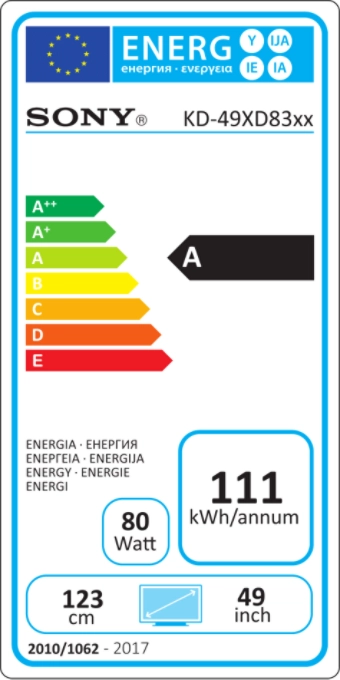 Sony KD49XD8305. Diagonal de la pantalla: 124,5 cm (49"), Tipo HD: 4K Ultra HD, Resolución de la pantalla: 3840 x 2160 Pixeles. Tipo de sintonizador: Analog & Digital, Formato de señal digital: DVB-C, DVB-S, DVB-S2, DVB-T, DVB-T2. Sistema operativo instalado: Android. Potencia estimada RMS: 20 W, Modos de sonido: Película, Música, Deportes, Estándar, Decodificadores incorporados: Dolby Digital. Navegador compatible: Opera